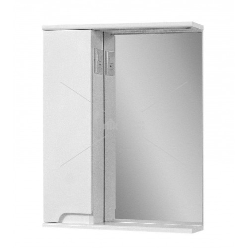 Дзеркало Альвеус 50 ліве з підсвічуванням і розеткою з вимикачем, оснащене дверкою а всередині дві скляні полички. Корпус виконаний з ламінованого ДСП в білому кольорі, має додаткове лакове глянсове покриття. Фасад складається з білої лицьової панелі, яка виконана з МДФ - грунтована, пофарбована а поверх покрита лаком з високим ступенем блиску. Ручки в дзеркалі врізні, хромовані. Можлива комплектація тумбою і пеналом цієї серії.